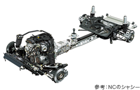 NCファンの方には申し訳ないですが、NCのシャシー画像と見比べると、スリム化軽量化をイメージさせてくれます。ちなみにプレスリリースには「