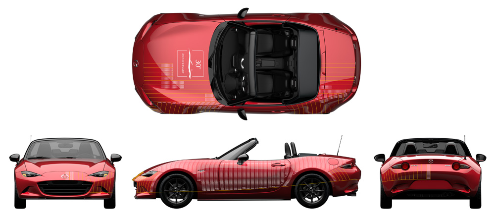 30周年お祝い署名車は、NDのソフトトップ ソウルレッドクリスタルメタリックです。